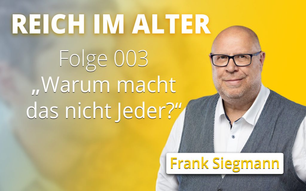 „Reich im Alter – Dein Wegweiser für finanzielle Sicherheit“, dem Podcast, der Dir die Türen zu einer sorgenfreien Zukunft öffnet. Frank Siegmann ist dein Gastgeber.